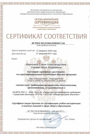 Преподаватели Центра работают по уникальной программе. Авторский курс состоит из двух уровней, в них входит обучение письму и чтению на английском. Методика преподавания разработана специально для русскоговорящих детей и позволяет овладеть иностранным в кратчайшие сроки. В программу входят 72 часа интенсивных занятий, предназначенных для учащихся дошкольного и младшего школьного возраста. После успешного прохождения курса ребенок научится читать, писать, увеличит свой активный словарный запас до 400 слов, разовьет разговорные навыки.