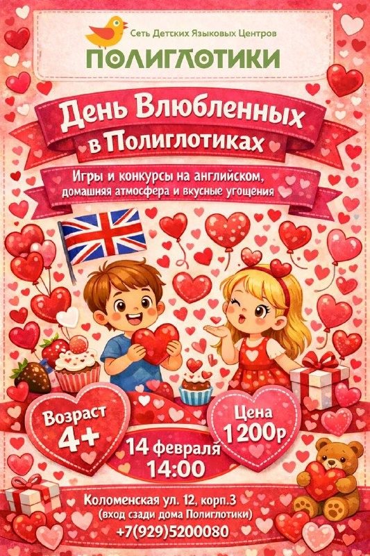 14 февраля в нашем детском языковом центре пройдёт яркая Valentine’s Party